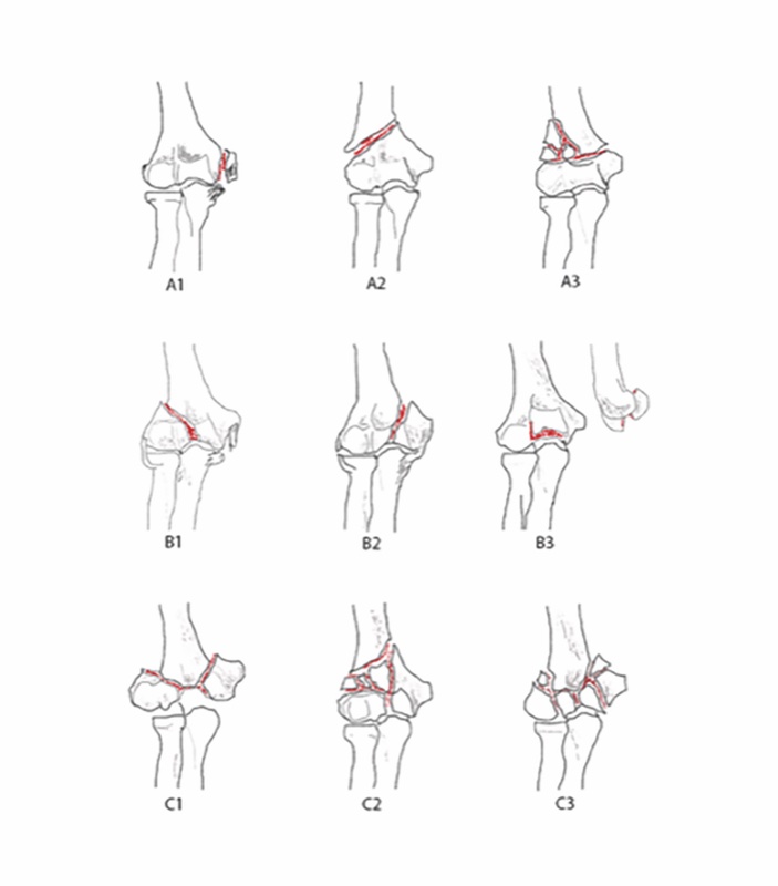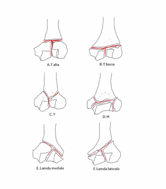 Fondamentale è differenziare le fratture che coinvolgono una o entrambe le colonne (extra-articolari, tipo A) dalle fratture che coinvolgono la superficie articolare con esclusione delle colonne (fratture condilari o trocleari). Nella maggior parte dei casi in fratture bicolonnari è coinvolta anche la parte articolare.