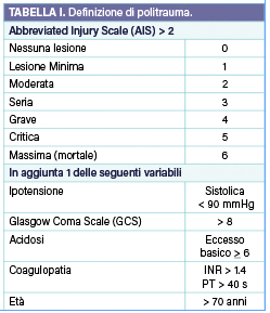 Il termine politrauma è stato originariamente usato da Tscherne nel 1966 per definire pazienti che dimostravano una combinazione di almeno2 lesioni severe del cranio, torace o addome o una di queste associata a una lesione degli arti1. Il termine politrauma è stato successivamente ridefinito da diversi autori con l’introduzione di parametri biometrici che meglio inquadrano le situazioni cliniche borderline.