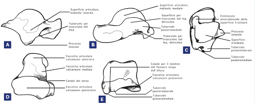 La superficie posteriore presenta un tubercolo mediale e uno laterale, tra loro separati da un solco destinato al passaggio del tendine del muscolo flessore lungo dell’alluce. Il collo dell’astragalo è la parte più vulnerabile alla frattura.